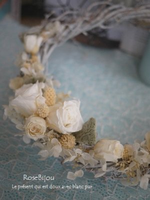 こちらはプリザーブドフラワーのリースアレンジになります。