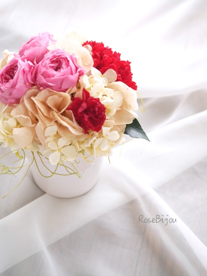 ※プリザーブドフラワーは自然素材の為、お花の大きさや色合いが